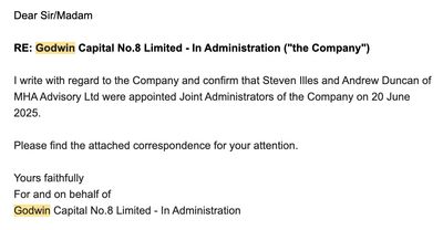 Godwin Capital No.6, No.8, No.20, and No.21 went into administration on the 20th of June 2025.